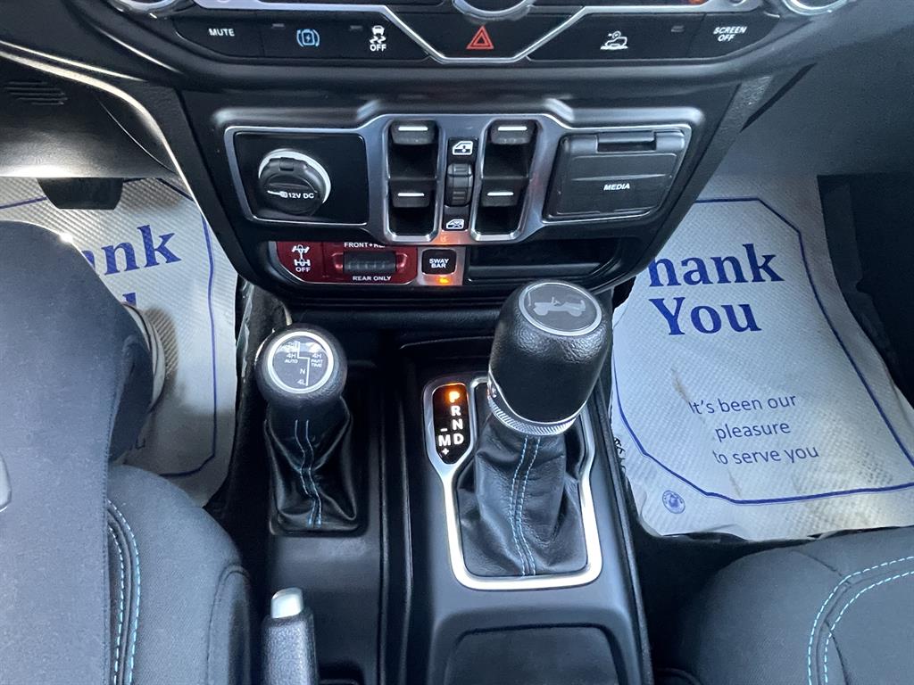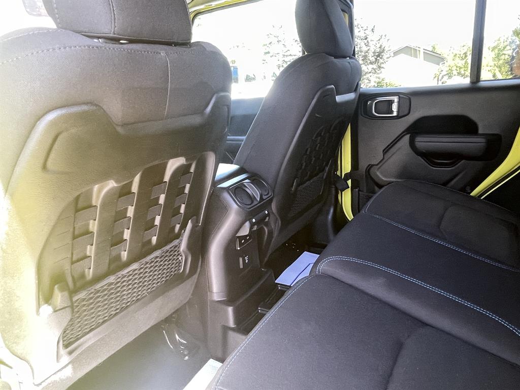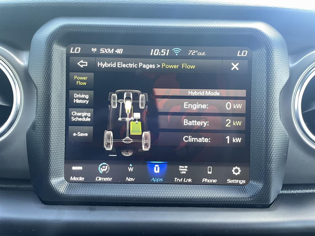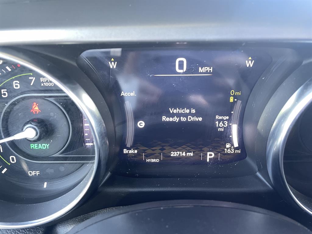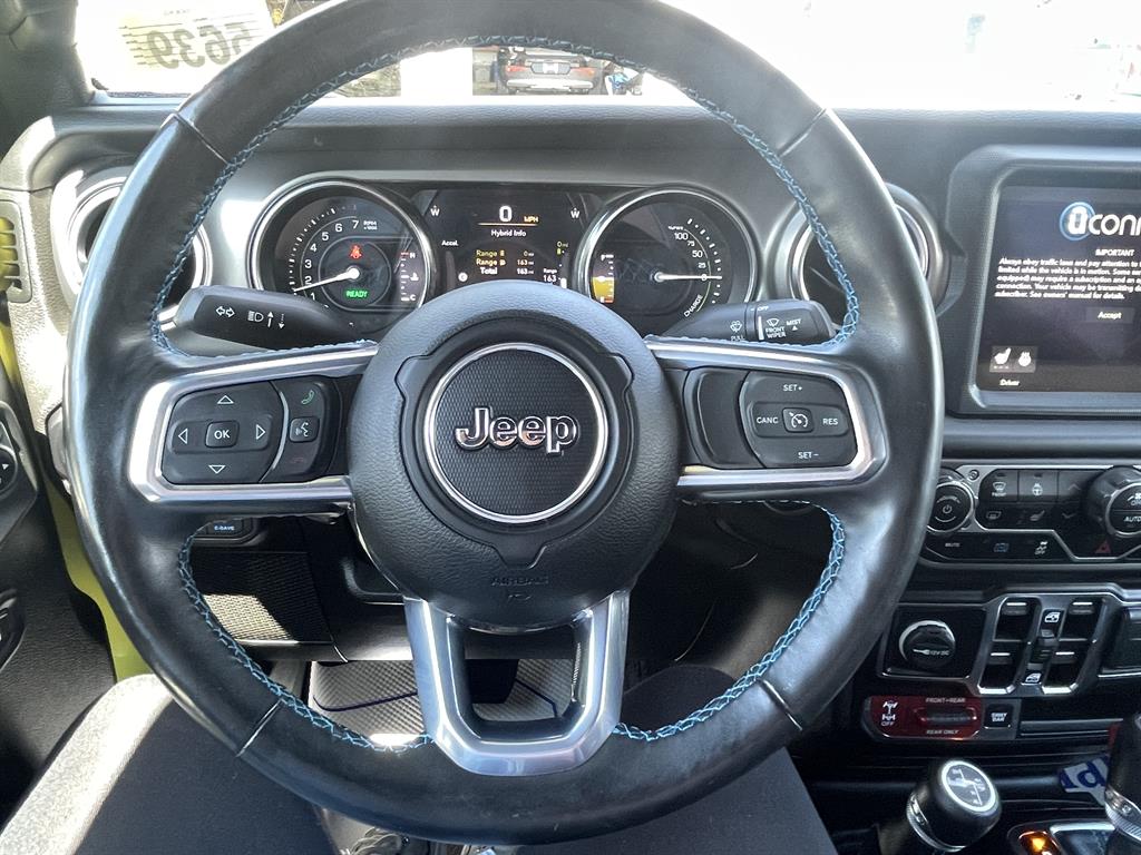 Cold Weather GroupQuick Order Package 29VRemote Start SystemAirbags - Front - DualAir Conditioning - Front - Single ZoneAirbags - Passenger - Occupant Sensing DeactivationAirbags - Front - SideAir Conditioning - Front - Automatic Climate ControlAir Conditioning - Air FiltrationAudio Streaming: BluetoothAudio - Antenna: MastAudio - Antenna: DiversityPower BrakesAudio Voice RecognitionAudio - Premium Brand: AlpineAudio Auxiliary Input: USBAudio Auxiliary Input: JackAudio Auxiliary Input: IPod/IPhone IntegrationAudio - Radio Data SystemAudio - Radio: AM/FMAudio - Radio: HD RadioAudio - Radio: Touch Screen DisplayReading Lights RearFloor Material CarpetFloor Mats FrontFront Brakes Ventilated DiscAssist Handle FrontRear Brakes Ventilated DiscRegenerative Braking SystemBraking AssistFloor Material Cargo Area CarpetAudio - Speed Sensitive Volume ControlAudio System 8 SpeakersFloor Mat Material CarpetParking Brake Trim UrethaneCargo Area LightChild Seat Anchors LATCH SystemRear Floor MatsReading Lights FrontChild Safety LocksAudio System 1 SubwooferAudio - SiriusXM Satellite RadioBraking assist hill start assistABS Brakes (4-Wheel)Electronic Brakeforce DistributionAudio System 552 WattsCruise ControlPower Steering Speed-ProportionalDoors Rear Door Type: Side-HingedCenter Console Front Console With Armrest And StorageMulti-function Remote Keyless Entry With Panic AlarmWindows Tinted WindshieldEngine Auto Stop/StartStorage BinDrivetrain Drive Mode SelectorSteering Wheel Mounted Controls Cruise ControlsUniversal Garage Door Opener HomelinkCenter Console With LightingSteering Wheel Mounted Controls PhoneRear View CameraSteering Wheel Mounted Controls AudioAdjustable Rear Headrests FoldableEngine Electric Charge Cord: 240 VoltStorage Door PocketsGrille Color Body-ColorDrivetrain Oil Cooler: AuxiliaryStorage Cargo Tie-Down Anchors And HooksEngine Push-Button StartRear View Monitor In DashFender Lip Moldings BlackEngine Electric Motor Battery Type: Lithium IonDrivetrain Transfer Case: Manual Hi-Lo Gear SelectionFront 12V Power Outlet(s)Front 115V Power OutletDriver Seat Manual Adjustments: ReclineCargo Area 12V Power OutletEngine 50 State EmissionsDriver Seat Manual Adjustments: 6Drivetrain Locking Differential: FrontMulti-function Remote Proximity Entry SystemSteering Wheel Tilt And TelescopicDriver Seat Adjustable Lumbar Support: ManualEngine Battery SaverDrivetrain Locking Differential: RearCenter Console LockingSteering Wheel Mounted Controls Multi-Function Screen ControlsStorage Front SeatbackSteering Wheel Mounted Controls Voice Recognition ControlsTool KitTrip OdometerWindows Solar-Tinted GlassExternal Temperature DisplayNumber Of Rear Headrests 3Fuel Economy Display RangeCompassRear Bumper Color BlackWarnings And Reminders Low Fuel LevelRemovable Roof Soft TopPassenger Seat Manual Adjustments: 4Phone Voice ActivatedFuel Economy Display MPGSeats Premium Cloth UpholsteryHeadlights Auto Delay OffRear Seats Split FoldingSkid Plate(s) FrontSeatbelts Seatbelt Force Limiters: FrontExterior Mirrors PowerHeadlights Auto On/OffTraction Control With Trailer Stability AssistMirror Color BlackDoor Courtesy LightsSecurity Engine ImmobilizerSeatbelts Seatbelt Warning Sensor: Driver And PassengerNavigation System Touch Screen DisplayStability ControlFront Seatbelts: 3-PointDaytime Running Lights LEDElectronic Messaging Assistance With Read FunctionSpare Wheel Aluminum Alloy Rim TypeVanity Mirrors Dual IlluminatingFront Suspension Type: Multi-LinkRocker Panel Color Body-ColorTraction ControlSeatbelts Second Row 3-PointSpare Tire Outside Mount LocationSkid Plate(s) Front And RearAmbient LightingPassenger Seat Manual Adjustments: ReclineSpare Tire Fullsize Matching SizeNavigation System Hard DrivePower Door Locks Anti-Lockout FeatureOne-Touch Windows: 2Exterior Entry Lights Security Approach LampsInside Rearview Mirror Auto-DimmingClockRear Seats 60-40 Split BenchOff-Road Suspension PackageSecurity Anti-Theft Alarm SystemMulti-Function DisplayDigital OdometerSeatbelts Emergency Locking Retractors: FrontExterior Mirrors Manual FoldingWindow Trim BlackNumber Of Front Headrests 2Phone Wireless Data Link BluetoothCrumple Zones FrontElectronic Messaging Assistance With Voice RecognitionTachometerCrumple Zones RearWarnings And Reminders Low BatterySeatbelts Seatbelt Pretensioners: FrontAuto-LockRoll Stability ControlFootwell LightsFront Suspension Classification: Solid Live AxleHeadlights LEDNavigation System With Voice RecognitionInterior Chrome AccentsSeats Front Seat Type: BucketTail And Brake Lights LEDFront Headrests AdjustableExterior Mirrors HeatedTowing And Hauling Tow Hooks: FrontTowing And Hauling Tow Hooks: RearReal Time TrafficSuspension Rear Coil SpringsSuspension Front Spring Type: Coil SpringsWindows Privacy GlassPower Windows: With Safety ReverseWindows Front Wipers: Variable IntermittentSuspension Stabilizer Bar(s): RearWindows Lockout ButtonSatellite Communications UconnectPremium Cloth Low-Back Bucket SeatsVehicle Assistance App - Roadside AssistanceWifi CapableDrivetrain 4WD Type: Part Time with On Demand SettingLinked Or Integrated Apps - Information And Entertainment: Google POIsInfotainment With Apple Carplay ReadyLinked Or Integrated Apps - Vehicle Utility: Parked Car FinderInfotainment With Android Auto ReadyLinked or Integrated Apps - Information and Entertainment: Google SearchLinked or Integrated Apps - Information and Entertainment: SiriusXM Travel LinkLinked Or Integrated Apps - Security: Remote Locking Horns And LightLinked Or Integrated Apps - Security: Remote LockingSeats - Driver Seat Manual Adjustments: HeightPremium Black Sunrider Soft TopLT285/70R17C OWL Off-Road TiresMOPAR All-Weather Floor MatsSuspension Front stabilizer bar: electronic disconnectingIn Car Entertainment Infotainment screen size: 8.4 in.Smart device app compatibility SiriusXM Guardian
