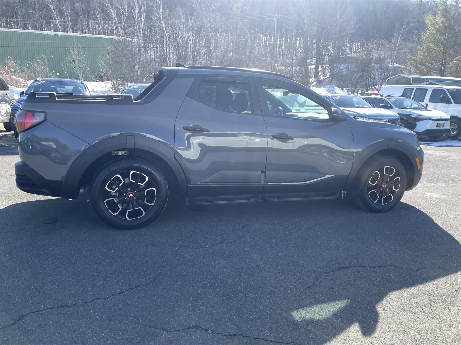 Airbags - Front - DualAirbags - Passenger - Occupant Sensing DeactivationAirbags - Front - SideAirbags - Rear - SideAirbags - Front - Side CurtainAir Conditioning - Front - Dual ZonesAir Conditioning - Front - Automatic Climate ControlAir Conditioning - Air FiltrationAudio Streaming: BluetoothAudio - Antenna: MastAudio - Antenna: DiversityPower BrakesAirbags - Rear - Side CurtainAudio Voice RecognitionAudio Auxiliary Input: USBAudio Auxiliary Input: IPod/IPhone IntegrationAudio - Radio Data SystemAudio - Radio: AM/FMAudio - Radio: HD RadioAudio - Radio: Touch Screen DisplayReading Lights RearFloor Material CarpetFront Brakes Ventilated DiscAssist Handle FrontBraking AssistAudio System 6 SpeakersAudio - Speed Sensitive Volume ControlRear Brakes DiscChild Seat Anchors LATCH SystemReading Lights FrontChild Safety LocksAudio - SiriusXM Satellite RadioBraking assist hill start assistABS Brakes (4-Wheel)Electronic Brakeforce DistributionCapless Fuel Filler SystemAssist Handle RearElectronic Parking Brake Auto OffPower Steering Speed-ProportionalDriver Seat HeatedCenter Console Front Console With Armrest And StorageSteering Wheel Mounted Controls Paddle ShifterMulti-function Remote Keyless Entry With Panic AlarmStorage Accessory HookDrivetrain Drive Mode SelectorSteering Wheel Mounted Controls Cruise ControlsStorage Under Rear SeatsSteering Wheel Mounted Controls PhoneRear View CameraSteering Wheel Mounted Controls AudioCargo Area 115V Power OutletDriver Seat Adjustable Lumbar Support: PowerStorage Door PocketsGrille Color BlackDrivetrain 4WD Type: On DemandEngine Push-Button StartStorage Sunglasses HolderRear View Monitor In DashCruise Control AdaptiveFender Lip Moldings BlackStorage Lockable Trunk In BedRemote Engine StartFront 12V Power Outlet(s)Driver Seat Power Adjustments: 8Overhead ConsoleMulti-function Remote Proximity Entry SystemEngine Alternator: 150 AmpsSteering Wheel Tilt And TelescopicEngine Battery SaverDriver Seat Power Adjustments: ReclineAdjustable Rear HeadrestsStorage Front SeatbackSteering Wheel Mounted Controls Voice Recognition ControlsTrip OdometerExternal Temperature DisplayInterior Metallic-Tone AccentsSeats Leatherette UpholsteryBlind Spot SensorNumber Of Rear Headrests 3CompassMoonroof Tilt/SlideRear Bumper Color BlackRunning Boards BlackWarnings And Reminders Low Fuel LevelPassenger Seat Manual Adjustments: 4Roof Rails BlackPhone Voice ActivatedHeadlights Auto Delay OffMoonroof Sliding SunshadeSkid Plate(s) FrontSeatbelts Seatbelt Force Limiters: FrontExterior Mirrors PowerHeadlights Auto On/OffMirror Color BlackSecurity Engine ImmobilizerSeatbelts Seatbelt Warning Sensor: Driver And PassengerStability ControlFront Seatbelts: 3-PointMoonroof One-Touch Open/CloseDaytime Running Lights LEDElectronic Messaging Assistance With Read FunctionFront Suspension Classification: IndependentSpare Tire Underbody Mount LocationVanity Mirrors Dual IlluminatingSpare Tire Temporary SizeTraction ControlSeatbelts Second Row 3-PointRunning BoardsPassenger Seat HeatedSkid Plate(s) Front And RearWindows Solar-Tinted Glass: FrontPassenger Seat Manual Adjustments: ReclinePower Door Locks Anti-Lockout FeatureOne-Touch Windows: 2Lane Deviation SensorsDriver Attention Alert SystemInside Rearview Mirror Auto-DimmingClockRear Seats 60-40 Split BenchExterior Mirrors Integrated Turn SignalsSecurity Anti-Theft Alarm SystemMulti-Function DisplayDigital OdometerSeatbelts Emergency Locking Retractors: FrontMoonroof Power GlassSeatbelts Emergency Locking Retractors: Front And RearExterior Mirrors Manual FoldingWindow Trim BlackNumber Of Front Headrests 2Phone Wireless Data Link BluetoothCross Traffic Alert RearElectronic Messaging Assistance With Voice RecognitionTachometerSeatbelts Seatbelt Pretensioners: FrontAuto-LockSpare Wheel Steel Rim TypeHeadlights LEDHeadlights Automatic High Beam DimmerFront Suspension Type: Macpherson StrutsSeats Front Seat Type: BucketRear Seats Folds UpTail And Brake Lights LEDRear Step BumperMoonroof Anti-Trapping FeatureFront Headrests AdjustableExterior Mirrors HeatedTonneau Cover HardPower WindowsSuspension Self Leveling SuspensionSuspension Rear Gas Shock AbsorbersSuspension Rear Coil SpringsSuspension Front Spring Type: Coil SpringsSuspension Front Arm Type: Lower Control ArmsWindows Privacy GlassWindows Laminated Glass: AcousticWindows Front Wipers: Variable IntermittentSuspension Stabilizer Bar(s): RearTowing And Hauling Cargo Tie DownsWindows Lockout ButtonTowing And Hauling Trailer Hitch: ReadyPickup Truck Sliding Rear Window Manual HorizontalSuspension Front Shock Type: Gas Shock AbsorbersWindows Rear DefoggerOption Group 01Carpeted Floor MatsFirst Aid KitWheel LocksPre-collision Warning System Vibrating Steering WheelBlue Link - Satellite CommunicationsHill Descent ControlVehicle Assistance App - Roadside AssistanceWireless Charging StationPre-Collision Warning System Audible WarningPre-Collision Warning System Visual WarningCargo Bed Light: LEDTailgate Power LockingTailgate Power OpenLinked Or Integrated Apps - Information And Entertainment: Google POIsInfotainment With Apple Carplay ReadyLinked Or Integrated Apps - Vehicle Utility: Service And MaintenanceLinked Or Integrated Apps - Vehicle Utility: Parked Car FinderInfotainment With Android Auto ReadyLinked or Integrated Apps - Information and Entertainment: Google SearchLinked Or Integrated Apps - Security: Remote Locking Horns And LightLane Keeping AssistLinked Or Integrated Apps - Security: Remote LockingSeats - Driver Seat Power Adjustments: HeightCargo Net - EnvelopeIn Car Entertainment Infotainment screen size: 10.25 in.Smart device app compatibility MyHyundai with Blue LinkSmart device app function engine startSmart device app function maintenance schedulingSmart device app function phone as a keyNavigation system over-the-air map updates (OTA)Bed MatCargo Net - BedRear Side AirbagsRoadside Assistance Kit